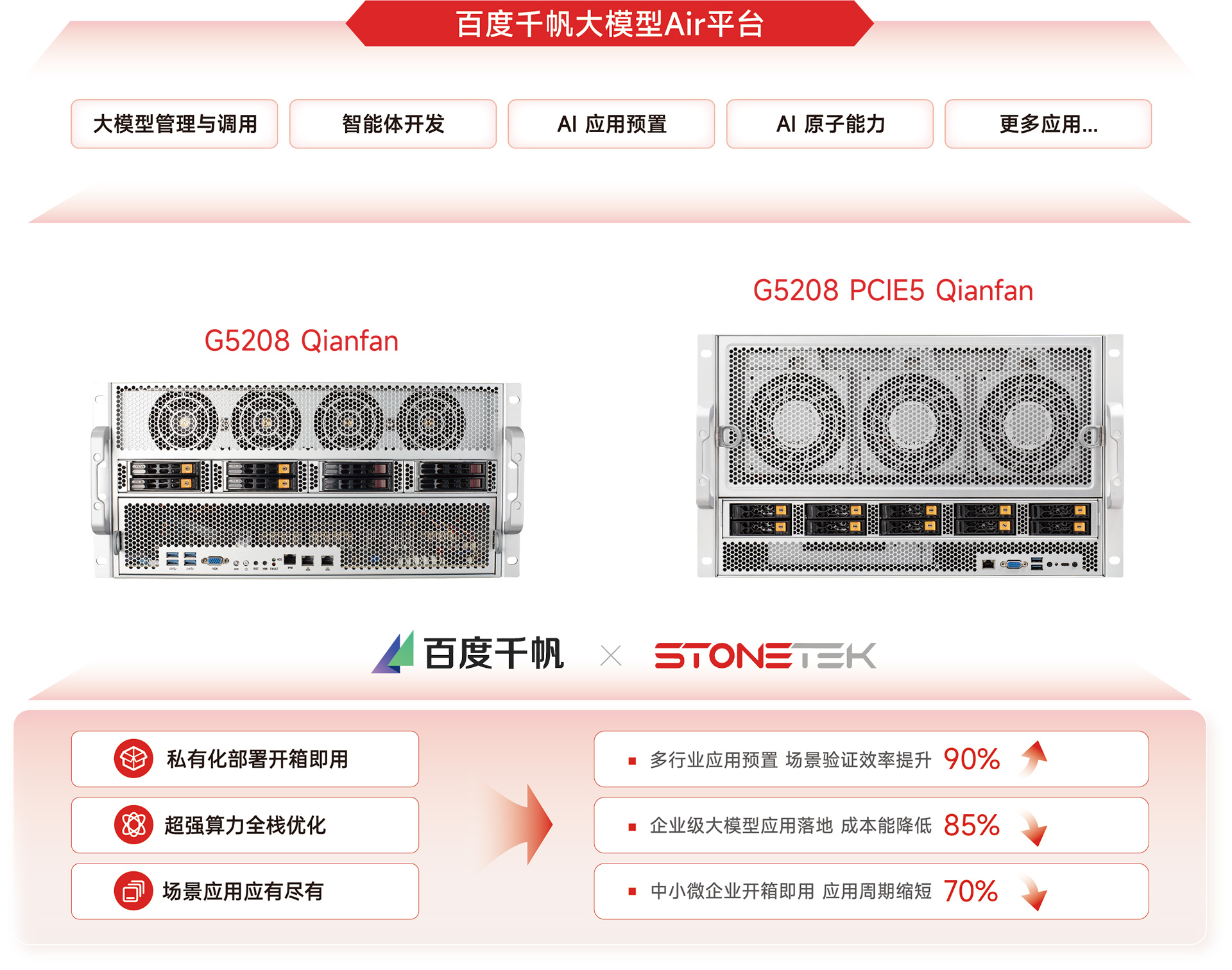 此外,G5208 Qianfan还提供了一站式多模态数据管理与处理能力,为模型训练和AI应用提供高质量的“数据燃料”,解决了模型训练和AI应用中,覆盖多模态数据采集、转换、处理、检索、服务等数据治理全生命周期环节的全链路诉求。通过一体四核的能力,端到端帮助用户降本增效,通过具体实践,可以显著的帮助用户降本增效,即通过多模态数据统一存储及管理,并支持GPU、CPU混合调度及分布式加速,助力企业客户处理提效600%,计算降本30%;通过高效协同的开发平台、场景化模版及Data到AI的通畅链路,助力企业客户开发提效30%;通过向量、全文、分析场景三合一的多模态检索引擎,助力企业客户检索存储降本80%。